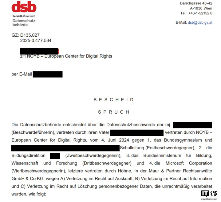 IT之家援引博文介绍,此案的导火索源于一名奥地利学生的维权行动。该学生依据GDPR赋予的权利,要求所在学校提供相关说明,明确其使用Microsoft365教育版时的数据信息处理方案。